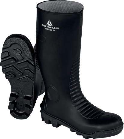 Cholewka: PVC. Podszewka: poliester. Ochrona kostek. Tylna pętla do ściągania obuwia. Podnosek ochronny: stal nierdzewna. Wkładka antyprzebiciowa: stal nierdzewna. Podeszwa: PVC – Nitryl z dużymi zaczepami.